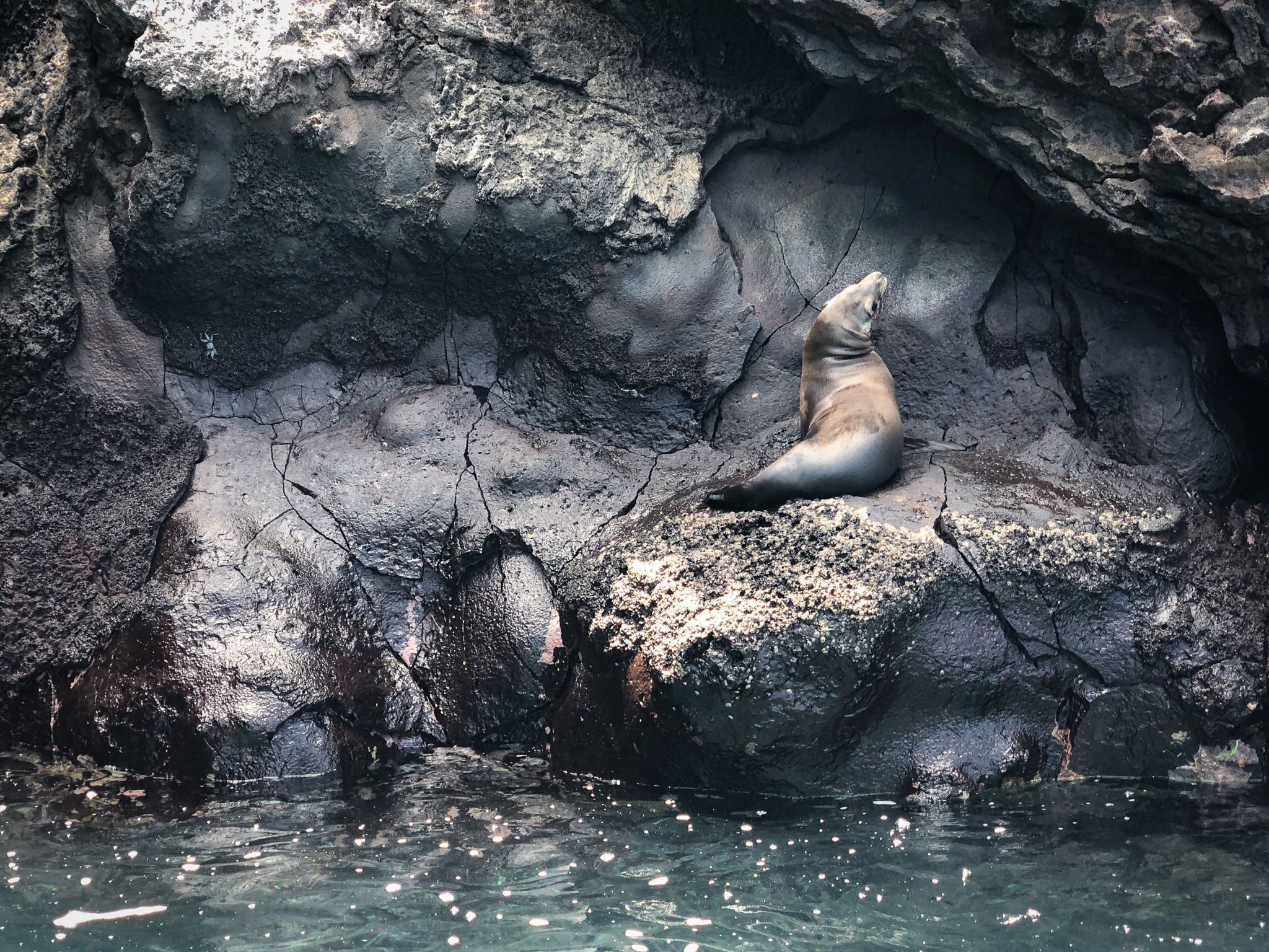 We spent the day exploring Santa Cruz Island. Guests disembarked in the morning to visit a ranch in the highlands of Santa Cruz where we encountered the Galapagos giant tortoise. We were quite lucky on this day, as we observed many giant tortoises of varying ages. The freshwater pond where these giants tend to aggregate was teeming with life; we counted at least 25 tortoises there alone! Giant tortoises are considered bioengineers; by virtue of their natural history, they alter their environment. They graze upon their favorite plants and drop seeds across the landscape—these seeds are perfectly ready for germination, nestled in a little bundle of high nutrient fertilizer. The Santa Cruz giant tortoise exhibits a dome-shaped carapace, an advantageous adaptation for plowing through the dense vegetation of an island with significant precipitation.