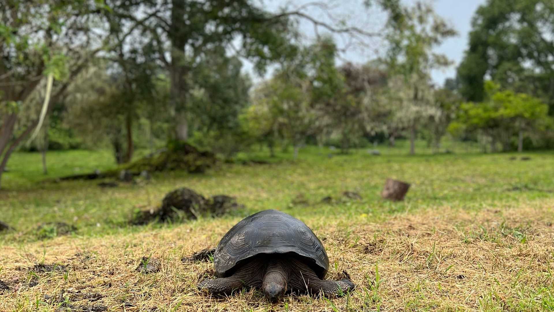 Photo caption and photographer: A Santa Cruz giant tortoise grazes at Manzanillo Ranch. These reptiles play an incredibly important role as megaherbivores in the Galapagos. We are so lucky to have the opportunity to observe them up close. Photo by Alexandra Widman