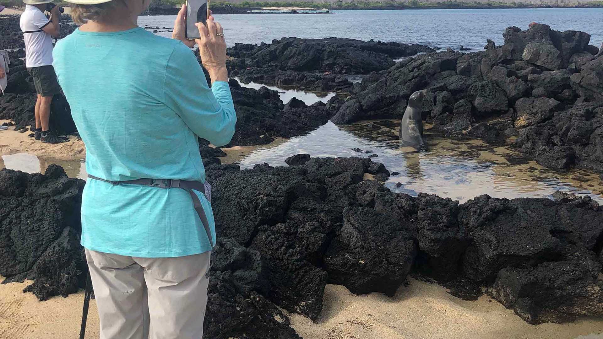 After our hike to Cerro Dragon, we disembarked once again for our snorkeling outing. Guests had the option to do beach or deep-water snorkeling. Deep water snorkelers observed many tropical fish species, including giant damselfishes and scrawled filefishes. Some guests were lucky enough to snorkel with Galapagos sharks.  Given that Guy Fawkes is an oceanic islet, pelagic fish tend to congregate in this area, including bonito and tuna.