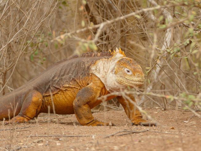 We just as well could have been visiting a different island. In actuality, we visited the same island we had just spent the day before visiting, focused on giant tortoises and the human angle to Galapagos. But that was seemingly ages ago (yesterday), and today we were on the northwest corner of the island, full rain-shadow effect, and dry as a bone. Land iguanas were our focus today, and we were very successful, finding them strategically spaced out around “Dragon Hill”, near either their burrows or their favorite prickly pear cactus, waiting for flowers or fruit to fall within reach. They are very patient creatures and can wait for weeks if necessary.