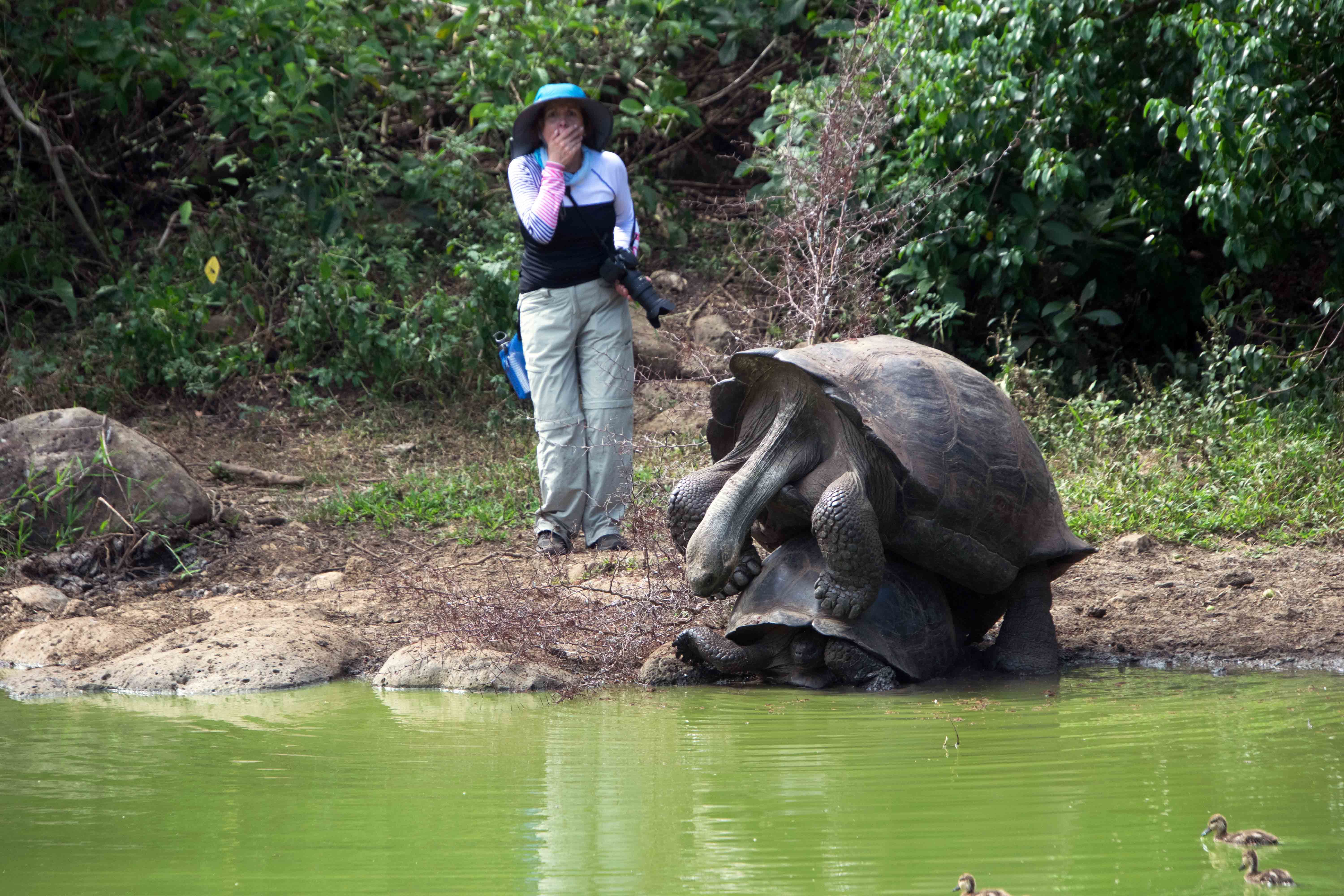This morning we awoke as we were approaching our visitor site, known as Cerro Dragon, located at the north western point of Santa Cruz Island. We disembarked early today; it was a sunny morning and the Galapagos land iguanas were going back under the bushes to look for shade. The famous Darwin finches, Galapagos mockingbirds and lava lizards were on display—it almost seemed as if they were posing for photos! Back on board, we quickly changed to head out for deep water snorkeling at Guy Fawkes Islet. Here we saw a huge school of fish and several playful sea lions.