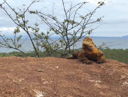 It is our fifth day exploring the Galápagos Islands aboard the National Geographic Endeavour, and yet we continue to be amazed by this wonderful paradise. Every day, our discoveries confirm why this destination is also known as the living laboratory. Today, our expedition took place on the northern side of Santa Cruz, the second largest island after Isabela. For the very first time during this week, we were able to see land iguanas in the wild. Because we are at the end of the rainy season, there are still very good conditions for these reptiles, and we spotted them all along the walking trail during this morning’s nature hike. Some of the other highlights of the day included sightings of a greater flamingo, blue footed boobies, and both black and white-tipped sharks.