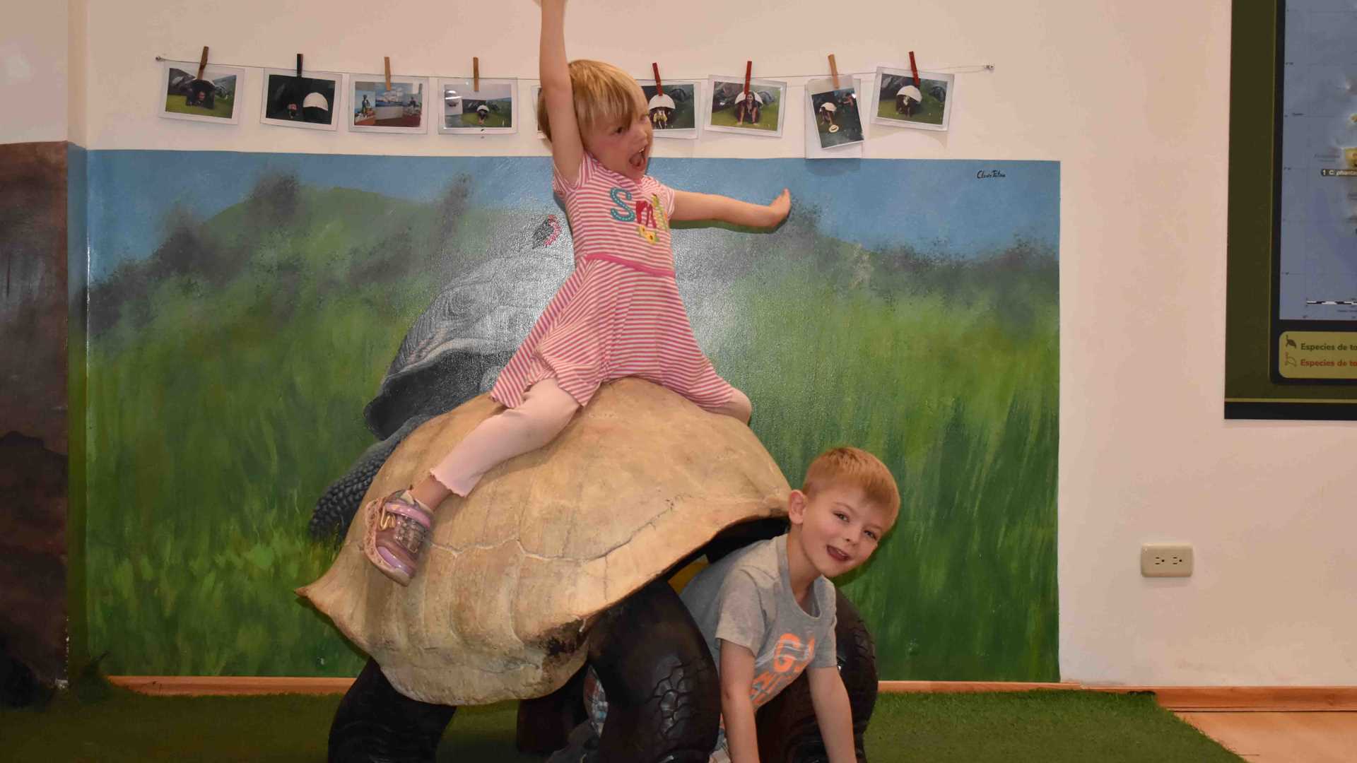 Today we disembarked at the peer of Puerto Ayora and went by bus to the Darwin Research Station to see the Giant Tortoises Breeding Center. This complex is located close to town and among a forest of centenary giant cacti, some of them about 30 feet high, and perhaps 200 years old or more. The place has a beautiful wooden boardwalk, and next to it are the corrals where baby tortoises are sheltered. Continuing our walk on the same trail, we found large tortoises of different shapes, sizes and islands, some of them named “saddlebacks” because their shells look a lot like a saddle for a horse. The Spaniards called them “Galapago”: this is where the name of the islands come from. Other tortoises here have a dome-shaped shell and can reach a weight of 500 pounds or more. Overall, we saw a hundred or so tortoises from different islands of the Archipelago. We continued our walk and headed over to the building where the famous Lonesome George Tortoise is housed. George was the last individual of the island Pinta. He died in 2012 and after a very careful taxidermy process developed in New York, was brought back to Santa Cruz Island Center. Now he is exhibited in a special temperate room behind glass.
