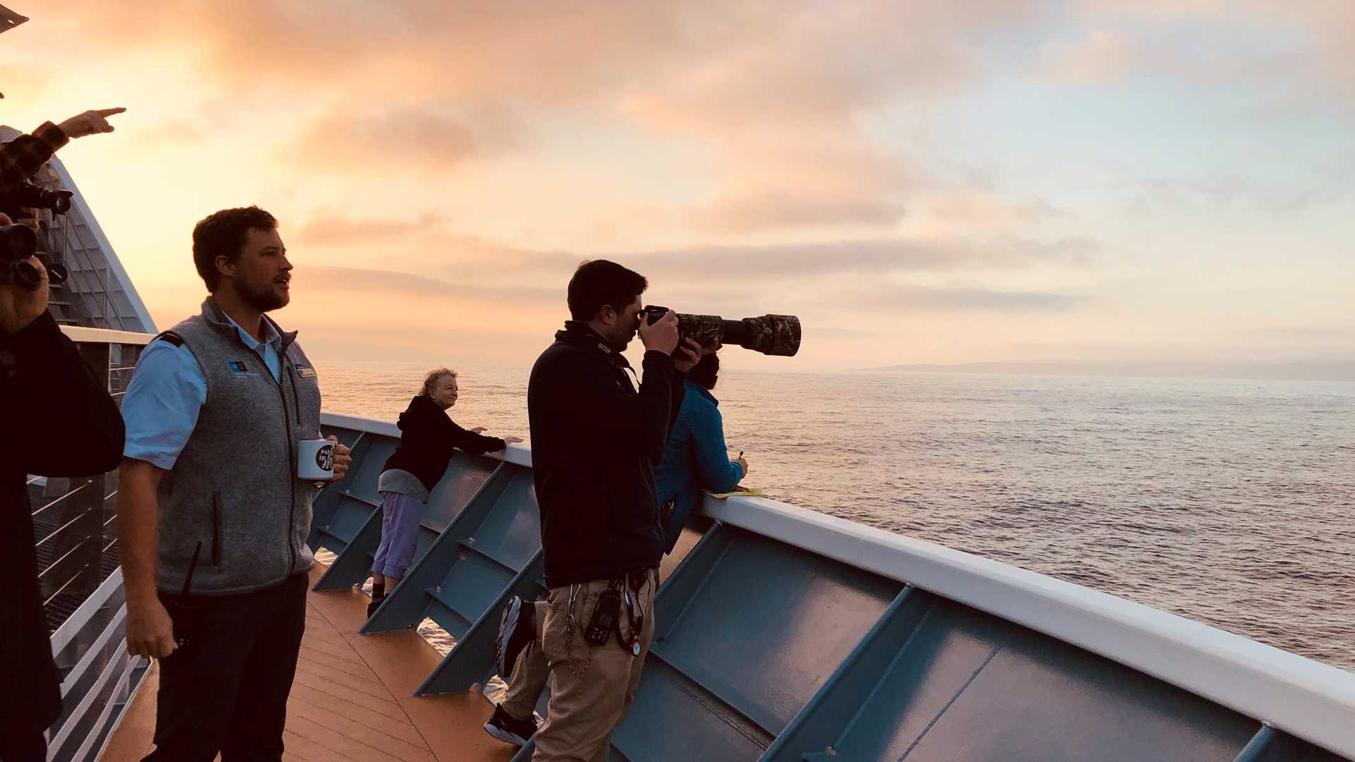 Santa Rosa Island was the backdrop of a morning that can only be described as explosive biodiversity. It was 6:15 on the bow as the ship slowly approached a long stretch of rippling surface water. As we floated closer, we could see the water churning with leaping California sea lions. Cormorants, gulls, and shearwaters circled above them. Then there was a surprise blow and fluke of multiple humpback whales. Finally, from the direction of the island, a pod of common dolphins made a beeline to the feeding waters. Anchovies are the suspected boil of fish and the cause for commotion. We, the observers, were there to see it at its peak...all before breakfast.