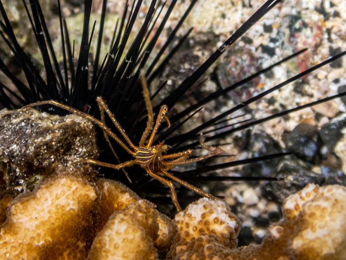Located just 60 miles north of Cabo San Lucas, Cabo Pulmo encompasses over 7,000 acres of marine-protected land that brims with life. Cabo Pulmo houses eight fingers of hard coral reef, providing a habitat for countless invertebrates and fish species within a complex labyrinth of crevices. Corals are composed of numerous polyps living and working together to form the beautiful reef. This morning, some of us snorkeled with a massive school of bigeye jacks in the rich waters off the coast. Those on pangas (fishing boats) enjoyed watching humpback whales and bottlenose dolphins dancing in the waves. In the afternoon, we landed on a verdant shoreline for beach walks and birding in Los Frailes, located just outside park boundaries. Birders headed to the estuary for a glimpse of migratory species and local waterfowl.