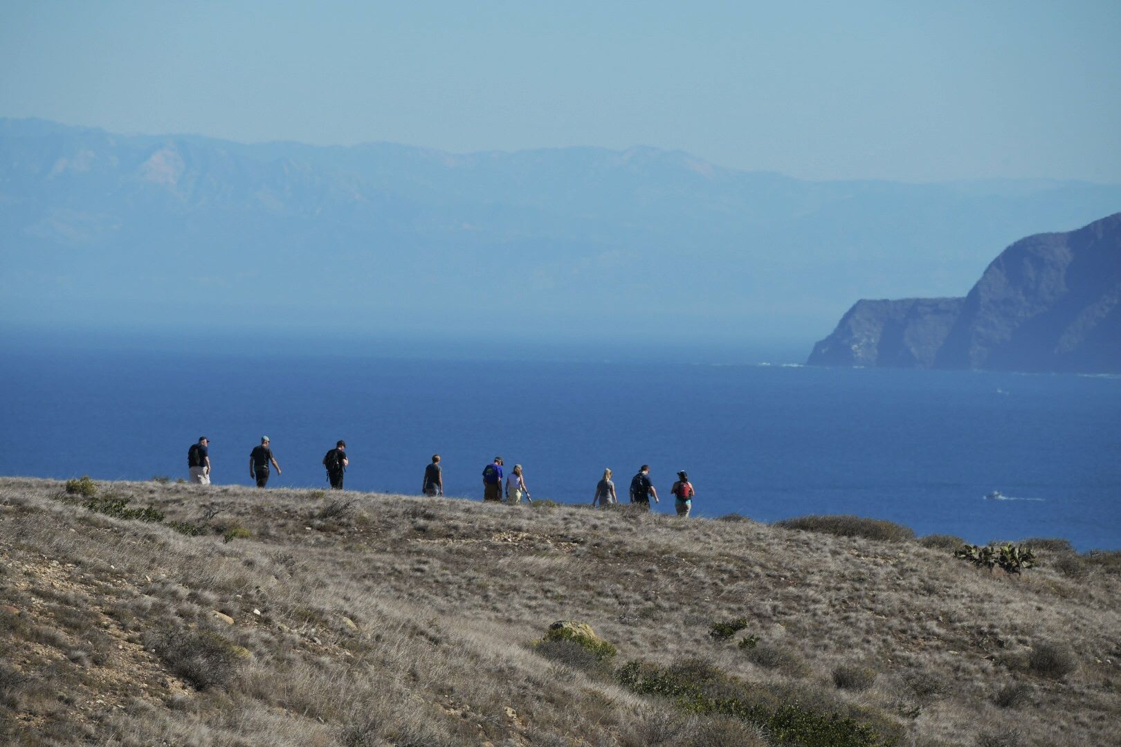 We woke up to a stunning sunrise while anchored off Santa Rosa Island. While some of us started the day with morning stretches on the sundeck, the rest of our guests (and staff) watched grey whales pass by the bow of National Geographic Quest . It was such a fantastic way to start the day. Our guests divided into groups to spend the afternoon exploring Santa Rosa. They admired everything the area has to offer, especially the renowned, endemic Torrey pine forests. These forests are among the rarest in the world, as they only occur in two places on Earth. Not only were they stunning, but they also proved a fantastic spot to have our picnic lunches. Occasionally, we caught glimpses of one of the tiny, elusive island foxes; they are also an endemic species! The weather was so lovely that some of us even went for a swim. We celebrated our day over cocktails on the ship while listening to our National Geographic explorer, Brian Kastle, share some stories about his research. Our ship simultaneously circumnavigated Santa Rosa, and then we finished our day watching the sunset over San Miguel Island.