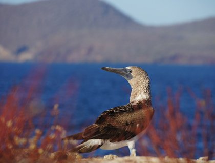 Nearby lies Buccaneer Cove, a historic place where once a young naturalist named Charles Darwin landed in order to explore the island and its lava flows. The cove has stunning cliffs, some very tall others quite eroded by wind and waves. The waters here are extremely rich since they are still reached by cold currents. We were able to see great numbers of marine life that occurs here, viewed from the comfort of the glass-bottom boat. The variety of fish species was great: from the common razor surgeonfish to the barber fish, various species of parrot fish, grunts, cabrillas, and puffers. A lonely male sea lion hunted some black-striped salemas, oblivious to our presence. The snorkelers had a fantastic time in the clear and warm water; they had a chance to swim with the large schools of fish, spotted rays, and eels, and simply enjoy the wonderful underwater world of Buccaneer Cove. Others kayaked along the shoreline, which is the home to many seabirds like Nazca and blue-footed boobies, brown noddy terns, and herons.