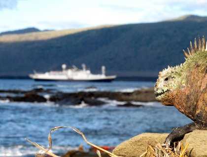 In the afternoon we landed on the black volcanic sandy beach. Some of our guests went snorkeling and the rest for a hike along the coast of James, on Santiago Island. Here we had the chance to walk along the coast where we found some interesting lava formations known as grottos, fur seals and sea lions laying on them, different species of shore birds like semi-palmate plover, sanderlings, ruddy turnstones, lots of marine iguanas, American oyster catchers, and much more. After witnessing an incredible sunset we headed back to the National Geographic Endeavour.