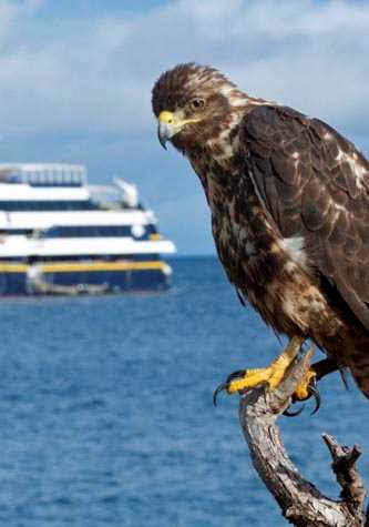 This Island has one of the most successful eradication programs carried on by the Galapagos National Park Service, and that is the reason we offered a pre-breakfast morning activity to take full advantage of this majestic island. One group was sent out for kayaking along the coast of a very well-known historical place known as Buccaneer Cove. With lots of sea birds and our two endemic Galapagos sea lions, another group was sent out for a fast paced walked along the interior with dense vegetation and hundreds of male finches singing to attract a mate. They are taking advantage of the good conditions for breeding. A last group decided to disembark and walked a mile along the black sandy beach with thousands of turtle’s nests. The nesting season is almost over but lucky enough we saw a Pacific green sea turtle finishing covering its eggs. It was a very well deserved sighting for our early risers. Galapagos hawks came very close as we were embarking the Zodiacs to come back on board.