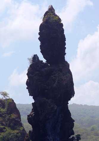 The water was warming up due to the waters coming from the north and the shores at Buccaneer´s cove were covered with strong waves, so instead of snorkelling we explored by Zodiacs. We observed some amazing lava formations including The Bishop´s rock, a much eroded tuff cone that is now the shape of a bishop praying. We also observed some sea birds along the shore. We came back on board to have a refreshing swim from the National Geographic Islander.
