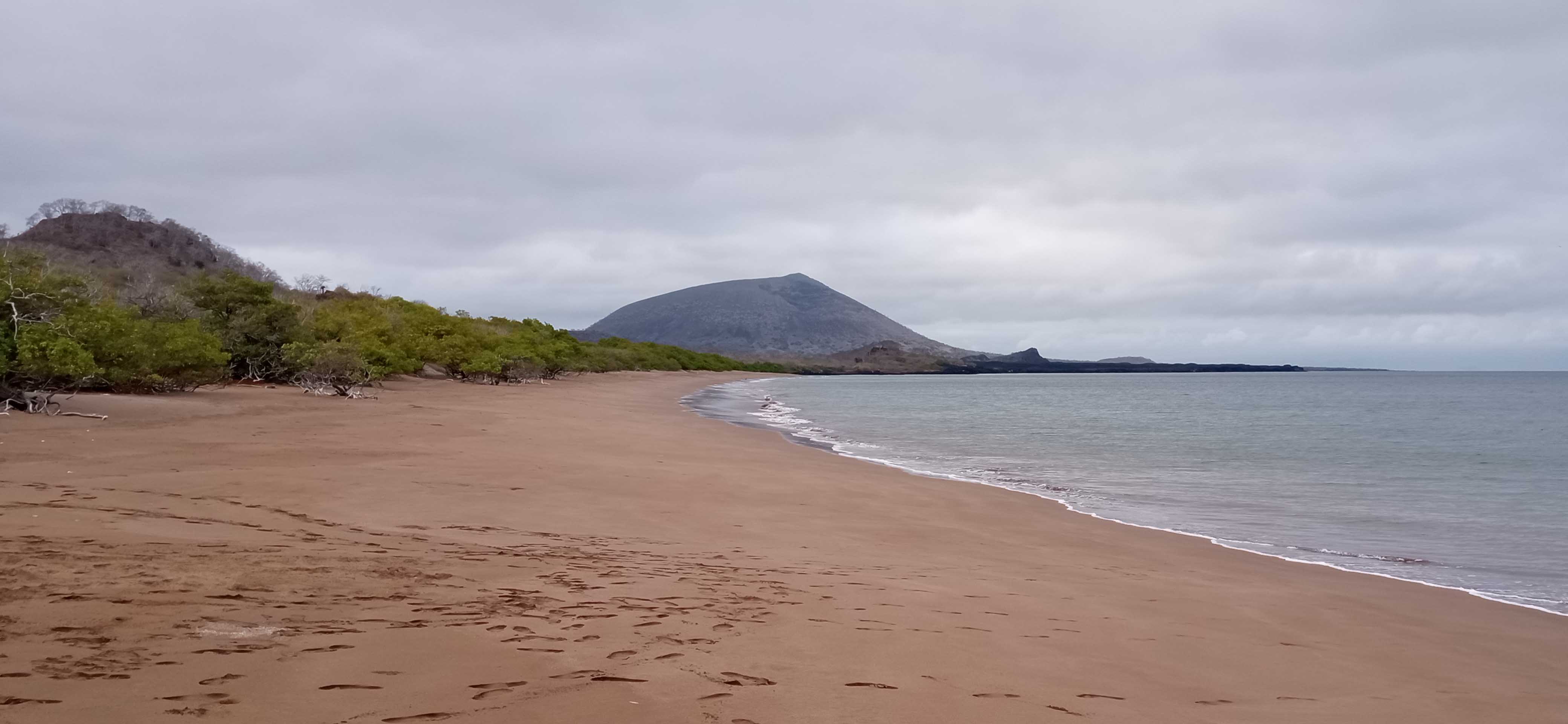 A long, mostly smooth overnight navigation took us back to the central islands of the Galapagos archipelago. We awoke to find gray skies and a chilly breeze; these were pleasant conditions for the kayaking and hiking we had scheduled for this morning. All those who went to the shore enjoyed walking the long calm beach, and watching blue-footed boobies diving offshore, or exploring the mangrove and palo santo forests where finches and warblers were feeding among the branches. The kayakers paddled along the dramatic cliffs and inlets to Buccaneers Cove and appreciated the brisk following wind that helped push them along. Everyone worked up an appetite for our late breakfast!