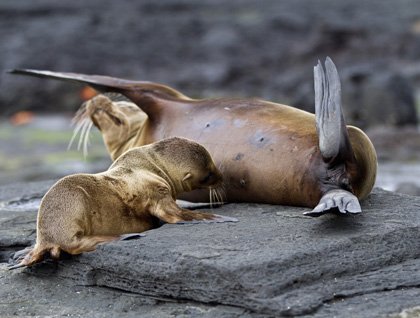 While we were having lunch, the National Geographic Endeavour weighed anchor and headed to Puerto Egas, our next destination. Shortly after anchoring we headed to the shore for hiking and snorkeling. The hike along the fringing lava of the coastline was incredible. This shore is dotted with many animals, such as marine iguanas, sea lions and different types of shore birds. Puerto Egas offers the best walk along the shore because there is a combination of landscapes, wildlife, and amazing geological features.