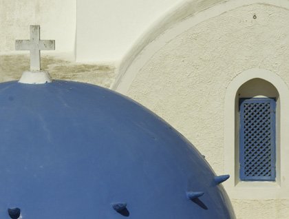 Today is Santorini day. Thera is the official name of this southernmost island of the Cyclades. Its more common name is owed to its patron Saint Irene, who died here in exile. The island is one of the great natural curiosities of Greece. It’s a huge active volcano on the volcanic arc of the southern Aegean. The center of the once-round island disappeared in the great explosion of prehistoric times. Today we are left with the crescent shaped island of Santorini; on the northwest side is the island of Therasia, and further south continuing the circular remnant of the ancient island is Aspronisi. In the center of the circle is the great caldera, in the middle of which are the “burnt” islands, made of lava and still actively volcanic.