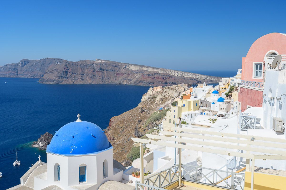 We took a short boat ride to the port of Athinios, filled with anticipation and excitement for all the wonders we were about to see. From the port we boarded buses and headed to the charming village of Oia, at the northernmost part of the island. Oia provided us with breathtaking scenery, with its white-and-blue houses drenched in the strong sun – a mosaic of cubist forms hanging from the nearly vertical cliffs.