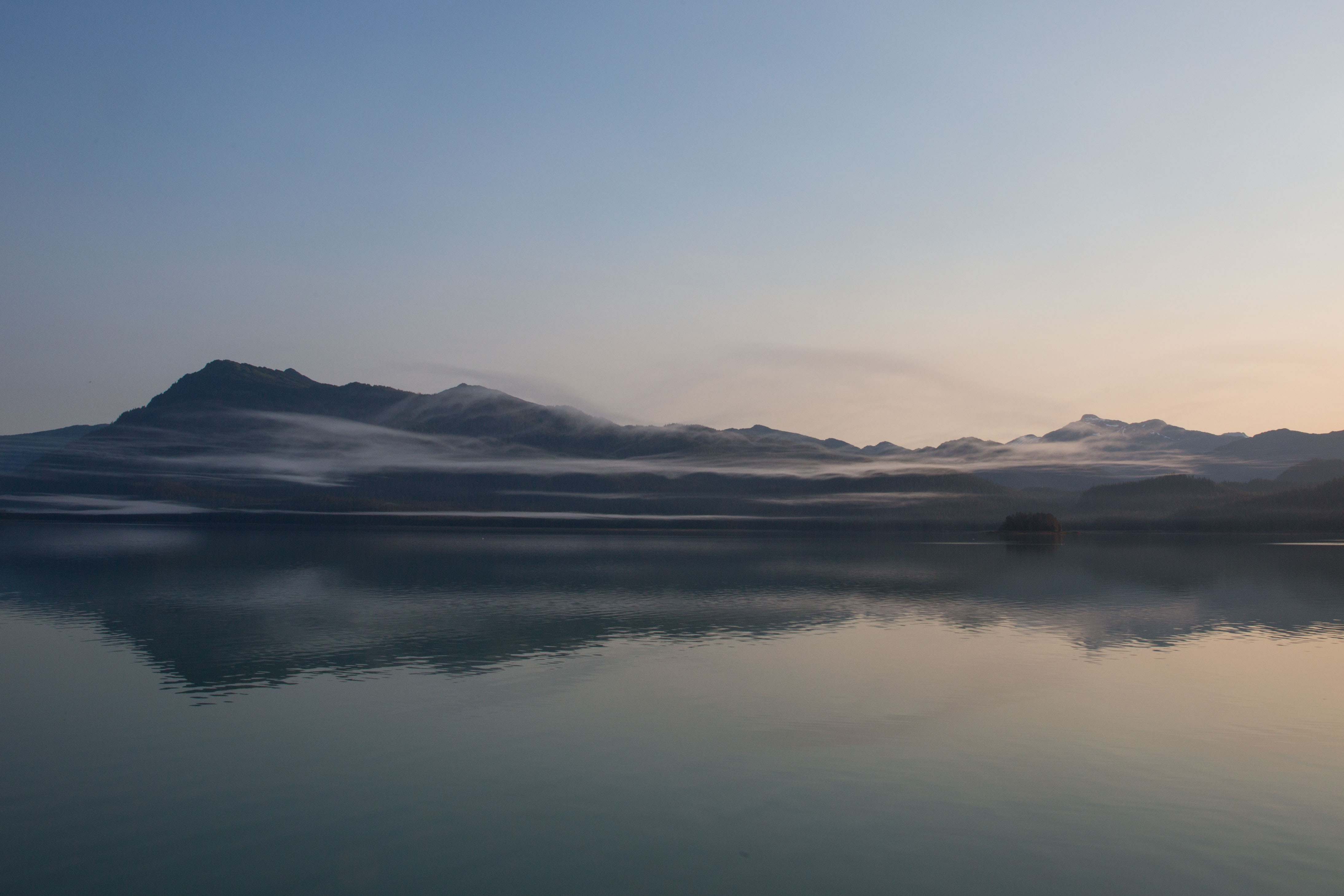 What’s in a name? It’s a bit ironic that this morning’s pre-breakfast cruise through a secluded inlet was called Scenery Cove. There hasn’t been a moment since we started this trip that hasn’t been scenic! Yesterday’s trip to Dawes Glacier, last night’s sunset encounter with a humpback whale, a fabulous full moon in pastel skies, and this morning’s sunrise without a hint of a cloud. But if someone decided it should be named Scenery Cove, then so be it, and a scenic cove it was! The clarity of the air was stunning.