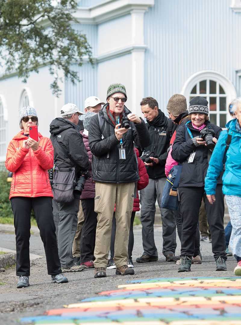 During lunch, we arrived at the colourful, little settlement of Seyðisfjӧrður, a small town of fewer than 1,000 souls that was founded by a Norwegian fishing company in 1895. The town thrived on herring until that fishery collapsed in the mid-20th century. Proximity to continental Europe gave the place a secondary function as a gateway to Iceland for ferry boats. Today, cruise ships—it only takes a couple to double the population of the small town for a few hours at a time—often tower over the Lego-like prefabricated townhouses brought in from Norway, nestled beneath the sharp cliffs of the fjord. Far from other Icelandic cities and towns, the high heathlands of Seyðisfjӧrður’s hinterland now attract ecotourists who walk a network of high trails that afford majestic views over the surrounding land and seascape. There are good opportunities to spot the best of Icelandic fauna—birds, seals, and whales—as well as native flora.