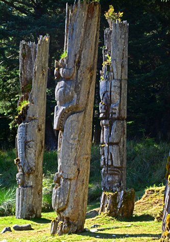 National Geographic Sea Bird cruised south overnight and anchored this morning near the southern tip of the Haida Gwaii archipelago, which includes over 200 islands. It was sunny and very pleasant for our visit to the ancient village site and for our scenic small boat tours around the nearby islets. SGang Gwaay (Wailing Island) is within the Gwaii Haanas National Park Reserve and National Marine Conservation Area Reserve and has been a World Heritage Site since 1981. Also known as Ninstints, after a reigning chief, the SGang Gwaay Linagaay village was a major winter home of the Kunghit Haida. Concealed and protected against enemies, it thrived until communicable diseases brought by Europeans devastated the population and the people moved to the north. Many poles and artifacts were removed and only house pits and mortuary poles remain as a powerful legacy of Haida heritage. They can still be seen today as they erode back to the earth. We visited with the Watchmen who act as guardians and care for this sacred site during the summer, listened to their stories as they guided us through the area, and felt their connection with the land and their ancestors.