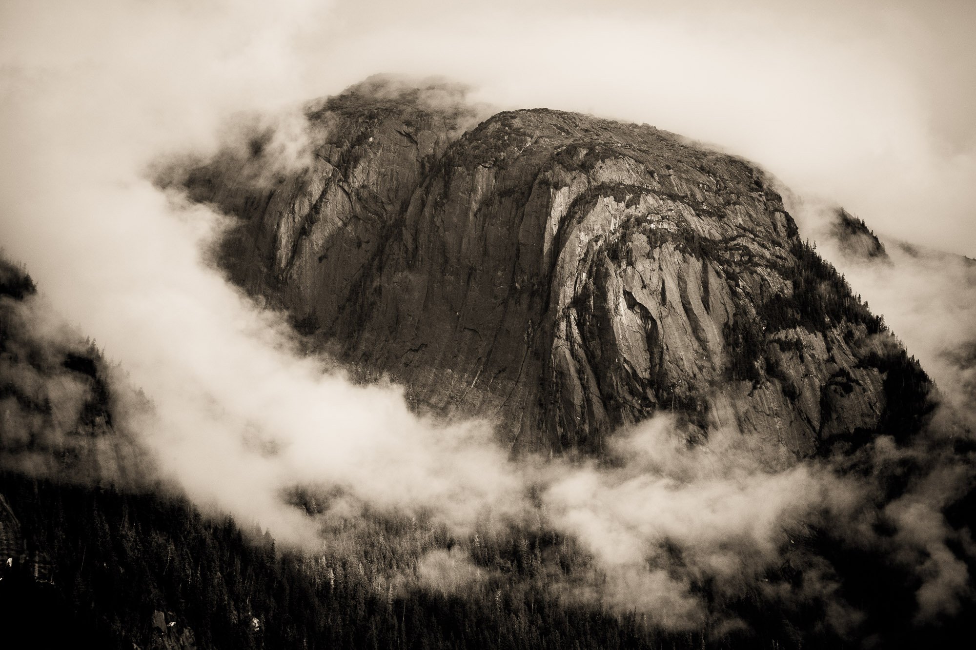 After being rocked to sleep by gale force winds, we awoke to a grey wet morning. The ocean surface was speckled with whitecaps, lines of sea spray dancing across the top of each crest. What would the day bring? Where were we? The plan, when we went to bed, was to travel south to the end of Prince of Wales Island. This plan was made impossible by the howling winds roaring in off the Pacific Ocean. In the night, the bridge team of National Geographic Sea Bird made the decision to take shelter in the Kashoveroff Islands. These islands greeted us at sunrise. In the lee of the islands, our expedition leader Sara offered everyone the chance to brave the elements and get out for a Zodiac cruise. Remarkably, nearly everyone wanted to go. These intrepid Zodiac cruisers we were treated to rainbows and soggy eagles, sea otters frolicking in the kelp forests, and American mink hunting along the shore. The sun even peaked out creating some spectacular light through the grey sheets of rain.