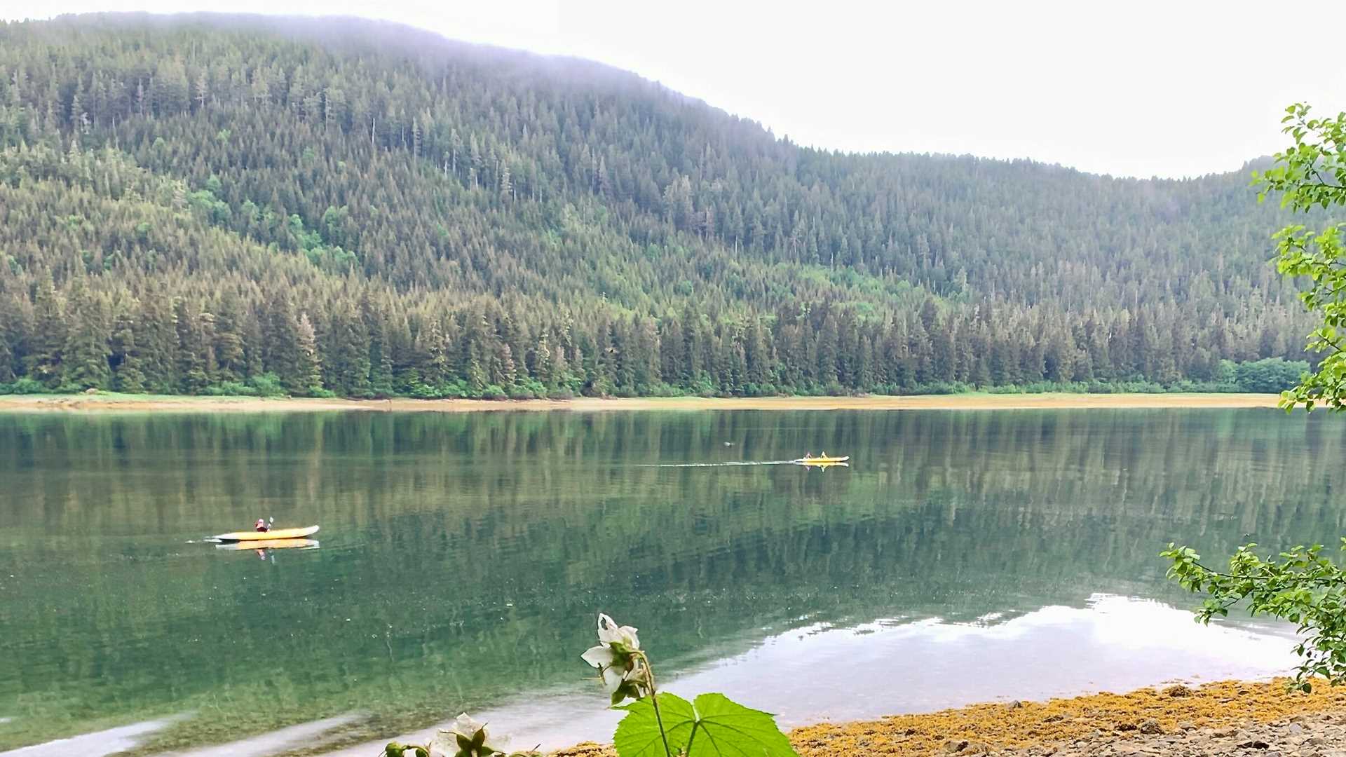 Our voyage continues to be one chock full of activities, wildlife, and remarkable scenery as we explore the varied regions of Southeast Alaska. National Geographic Venture has headed south to the junction of Chatham and Peril Straits, geographically central to the major islands of Admiralty, Baranof, and Chichagof. The morning was spent anchored in Sitkoh Bay, with options for hiking and kayaking. In the forest, on the beaches, and in the bay, we saw abundant wildlife and their signs, including bears, river otters, banana slugs, and lion’s mane jellyfish. In the afternoon, we cruised these scenic waters for wildlife, and we were mesmerized by the cascading Kasnyku Falls. Whale watching was in order, and we were duly rewarded.
