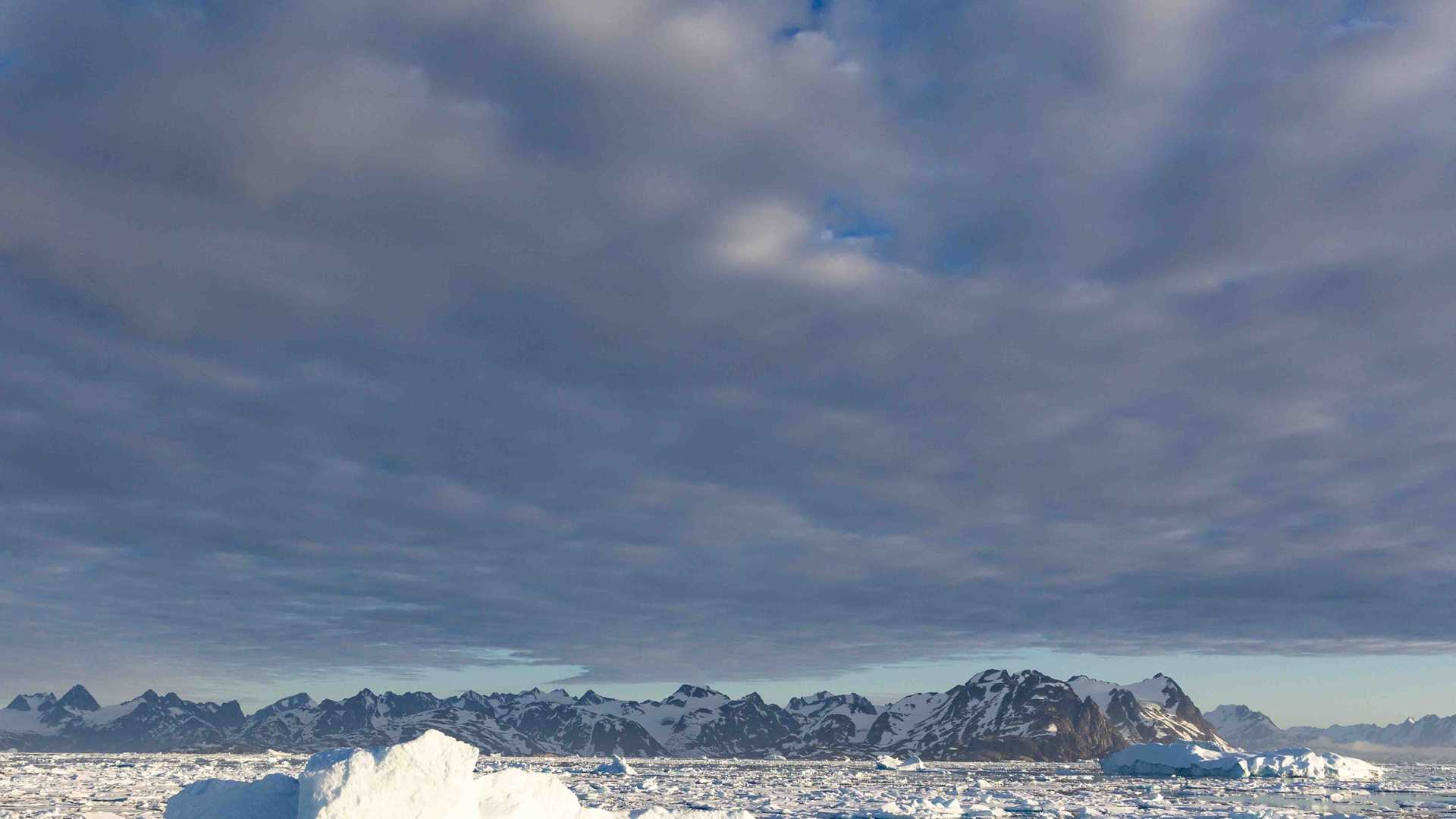 During dinner, the ship left the fjord and entered a dense field of floating sea ice and icebergs. From the windows, guests observed hundreds of hooded seals on ice in the foggy air.
