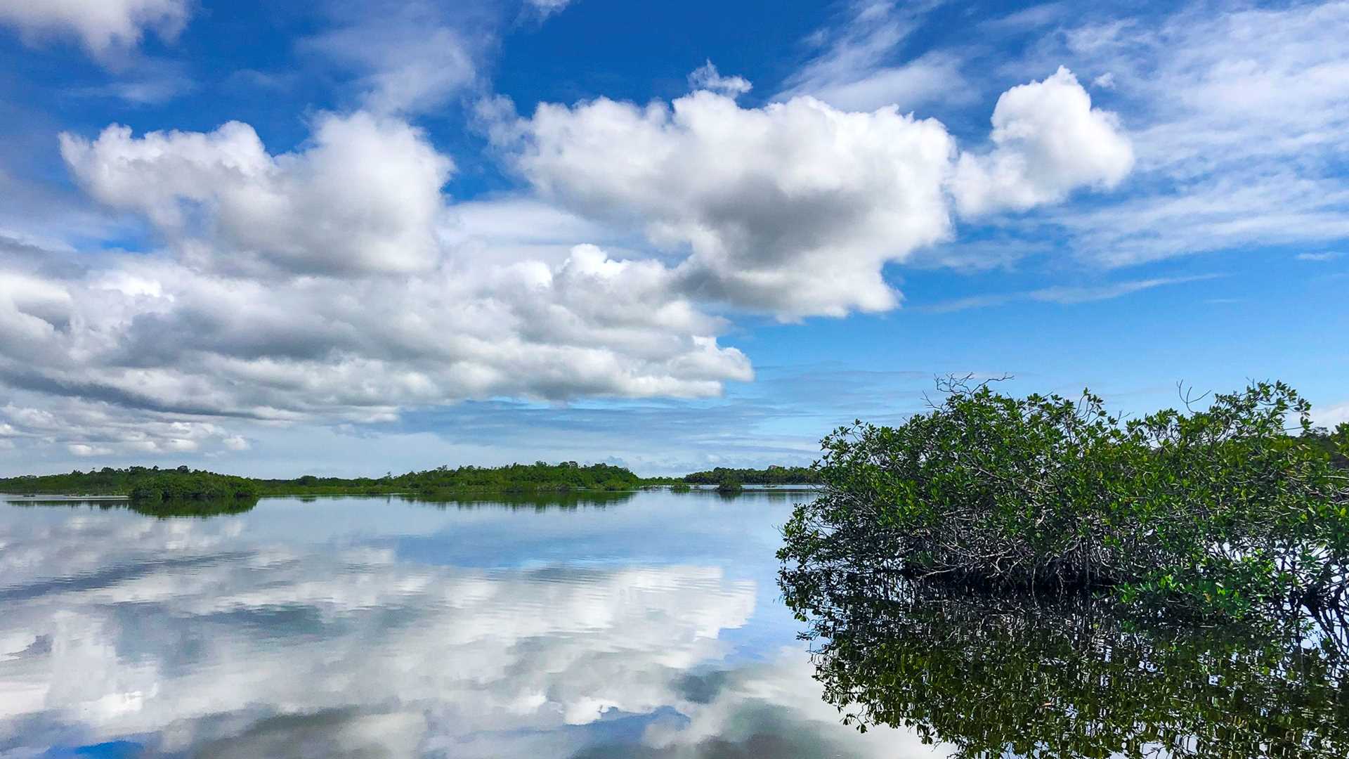 Next, we took Zodiacs to the kayaking platform. We had beautiful paddling in and around the mangrove channels leading to the savanna we just hiked. The mangrove root systems are well adapted to the salty environment. Birds, stingray, fishes, and manatee use the many channels and sea grass flats in this lagoon as a nursery to survive the cycle of life. We ended the kayak expedition looking for birds that are not easy to see but are vital in the ecosystem, like the boat-billed heron.