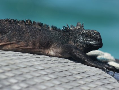 After breakfast we explored the area using our dependable Zodiac fleet. The Zodiac ride was a very successful one and we had the chance to cover a long distance admiring the striking volcanic landscape and looking for wildlife. Galapagos penguins, several heron species, marine iguanas and sea lions were admired and photographed. The majestic candelabra cacti were also seen behind the Galapagos penguins (this was a pretty odd photograph, as these two species are usually found in completely different climates). Before we returned to the ship we had a very curious marine iguana jump onto the bow of our Zodiac for a free ride with us around the coast. After giving us quite a show, it decided to jump back onto the black lava.