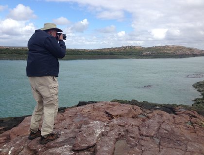 Meanwhile, Jonathan took a group along the shore and across the rocky terrain to find a hawk, lava lizards and sea lions. On the beach we went swimming beside a big and thankfully nonchalant male sea lion. The water was clear and warm and a couple young sea lions joined us for a swim! But the best thing that happened was when a penguin zipped back and forth several times in the very shallow waters beside the beach! That was a big thrill for all of us!