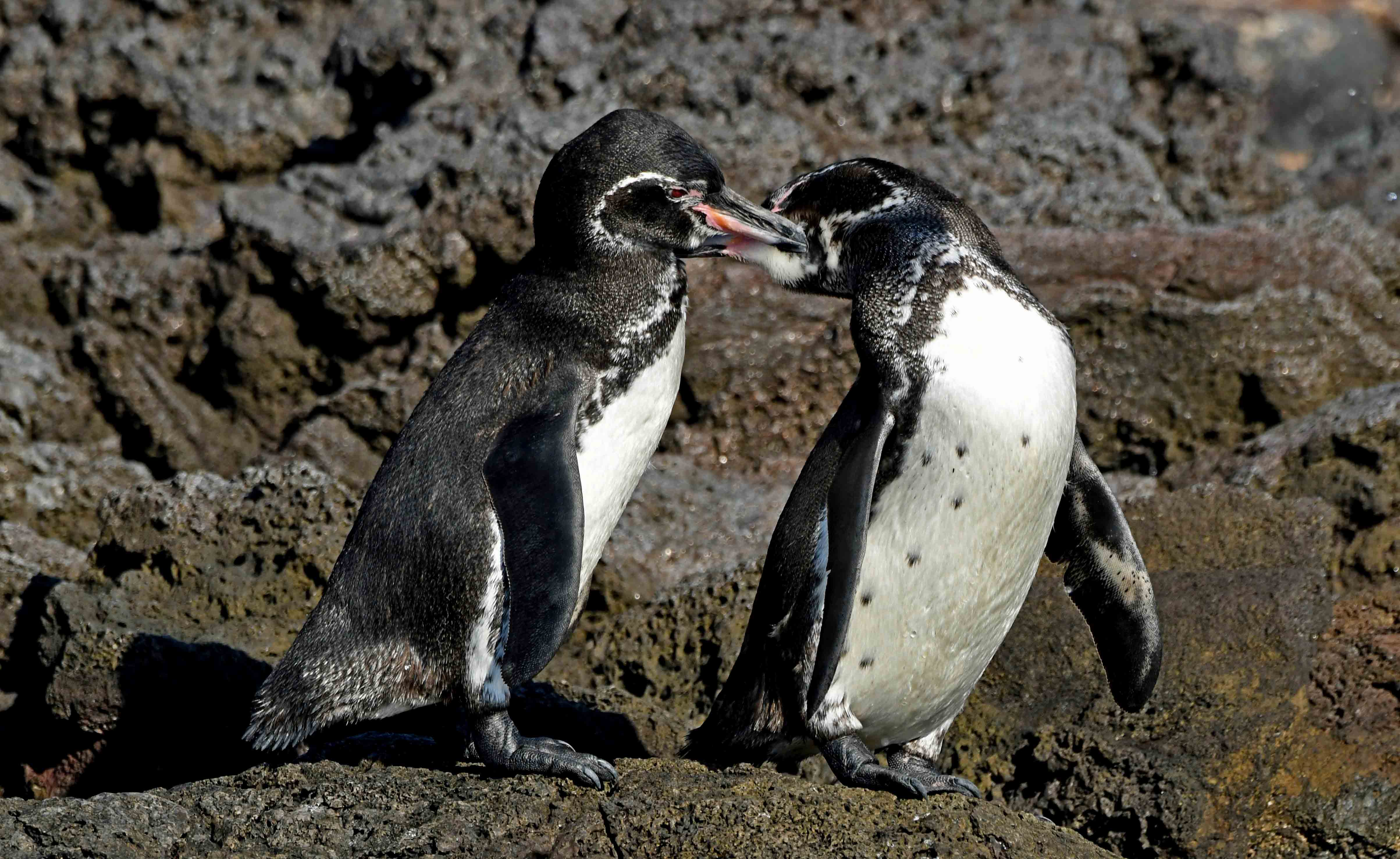 We stopped enroute to the Sullivan Bay lava fields at the western point of Bartolome Islet and were thrilled to find 5 penguins! One pair was courting and mating, so baby penguins are on their way. We disembarked on the black barren lava field and had an interesting walk over the varied texture of the pahoehoe lava flow. The guides pointed out a few pioneering plants and various geological structures such as the hornitos, spatter cones and lava tubes.