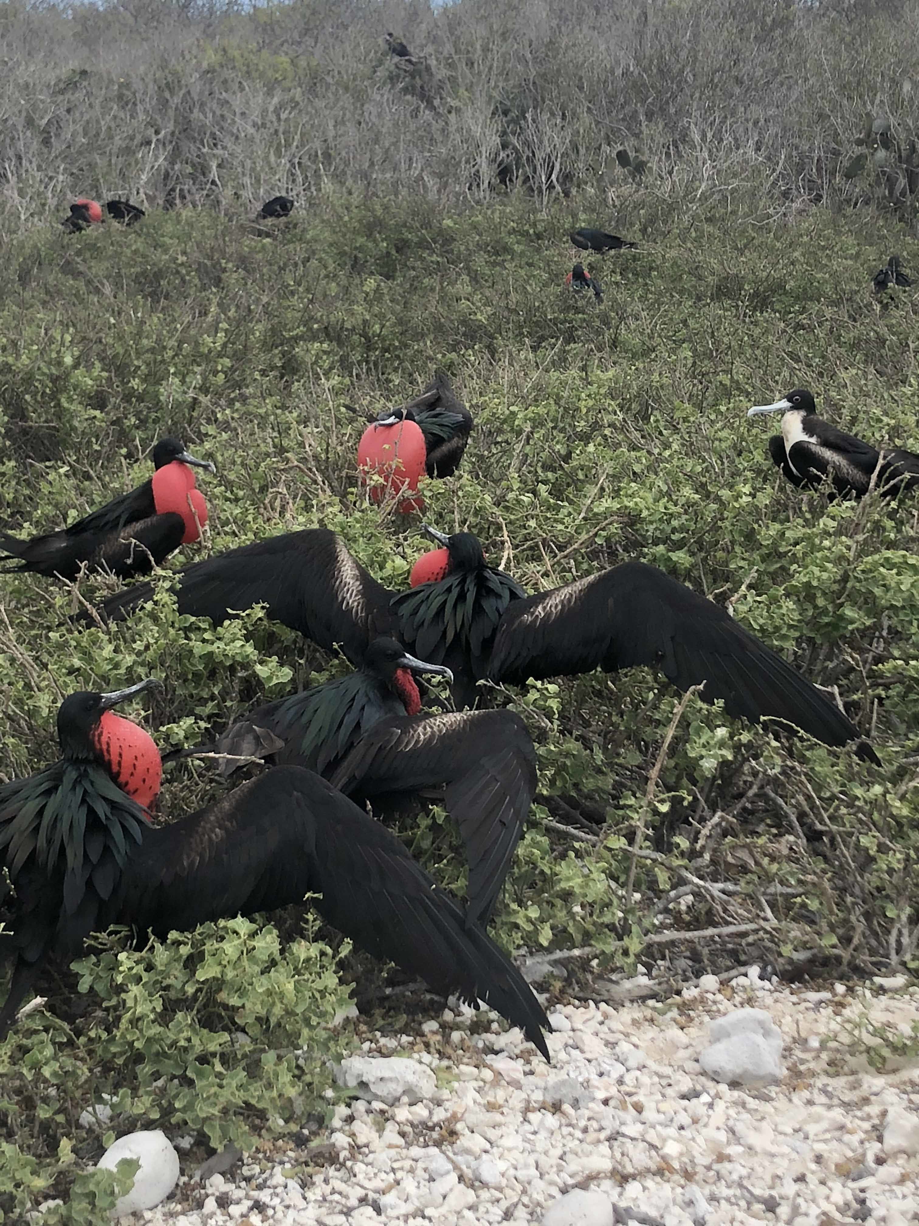 Small, barren, symmetrical, and hat-like, Sombrero Chino is a beautiful little island. Old lava flows are starting to become colonized by cacti. Lichens have already gotten a good start on the surface. However, we are primarily here to enjoy the wonders of the undersea world. But to begin…a Zodiac ride after breakfast in search of Galápagos penguins. Unlike other penguin species, these are not found by the hundreds, not even by the dozens, but in pairs, if we are lucky. Snorkeling, kayaking and stand-up paddleboarding was the aim of the morning, and in the afternoon, we changed locations to walk over newer, younger lava. In 1897 this flow emerged from a lateral vent of Santiago Island’s main volcano. It looks like it could have flowed out just 10 years ago—so uncolonized it is by vegetation, or eroded by weather. Our best human sculptors can only copy in marble the marvels that Mother Nature gifts us in her ripples, folds, and bends in basalt.