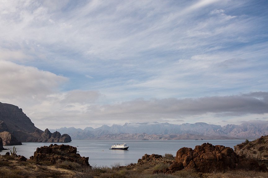 Once again we were fortunate to have clear skies overhead. That made waking up early so much easier! The National Geographic Islander was anchored close to the channel that separates the island of Santiago from Sombrero Chino, tempting us into its turquoise blue waters so clear we could see the bottom at our anchorage!