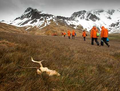 It has been over 100 years since Norwegian whalers introduced reindeer to the small, isolated island of South Georgia. For 95 of those years this introduced species has devastated the flora of the island and, in no place more so than Ocean Harbour (where three stags and seven hinds were first set free as a future source of meat for its inhabitants). Our morning took us through the remains of the early whaling station as well as Ocean Harbour’s picturesque valley, fresh with vibrant green vegetation, rising from the bleached remains of the recently culled reindeer herds. For the past five years the South Georgia government has been working to return the island to its pre-whaling balance and, as of this year, has successfully removed the invasive reindeer and rat populations throughout the island.