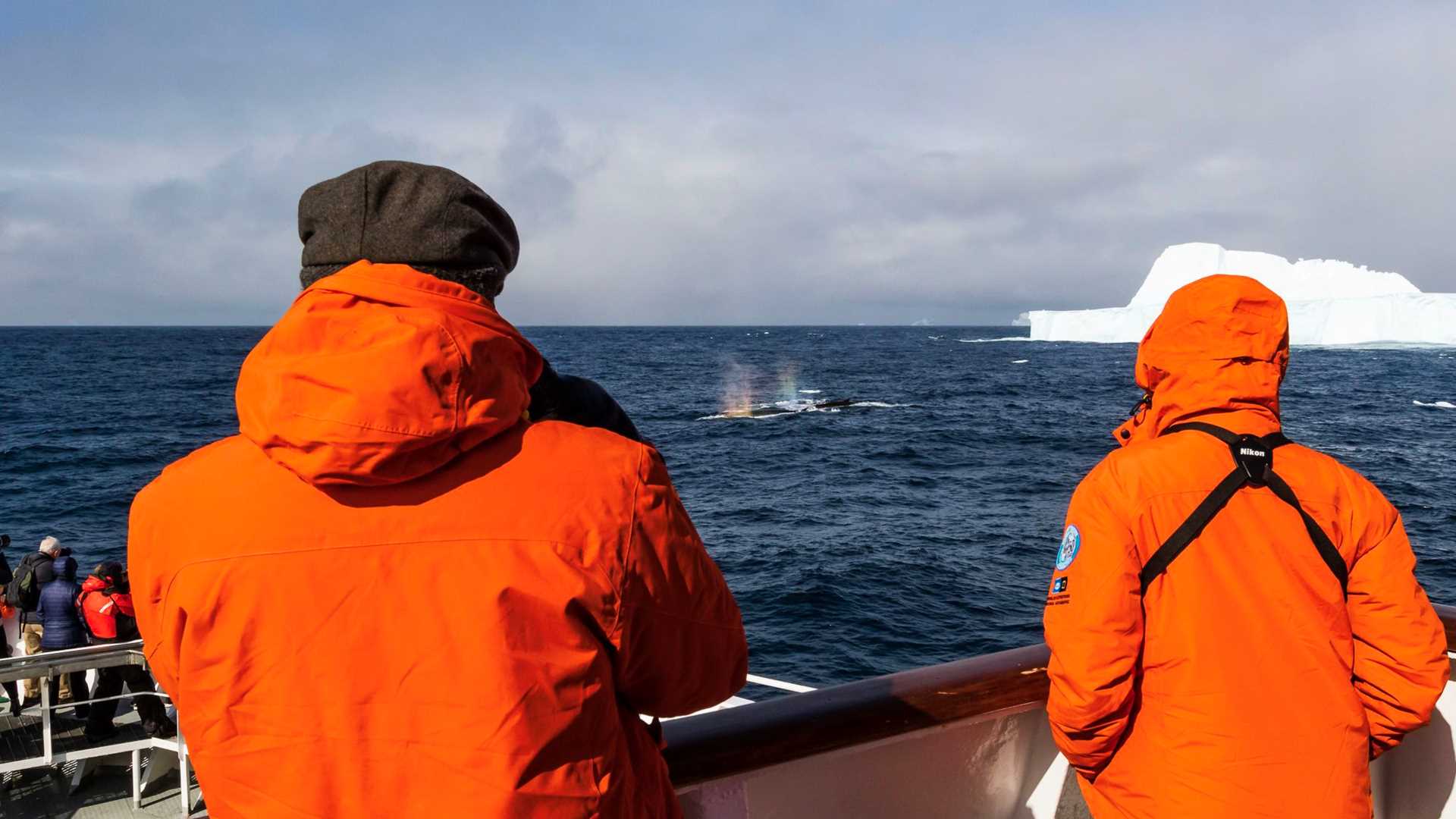 After a morning spent with plenty of whale sightings, we got out in the Zodiacs to explore the western fringe of Coronation Island. There we were treated to views of Weddell, leopard, and fur seals. Thousands of chinstrap penguins crowded every shore, and the air was filled with flying birds of many species. After barely surviving a Zodiac “attack” by friendly Vikings who brought us hot chocolate, we returned to our ship to be regaled with stories from the mountains by our National Geographic photographer, Tommy Heinrich. South Orkneys, you’ve outdone yourselves.