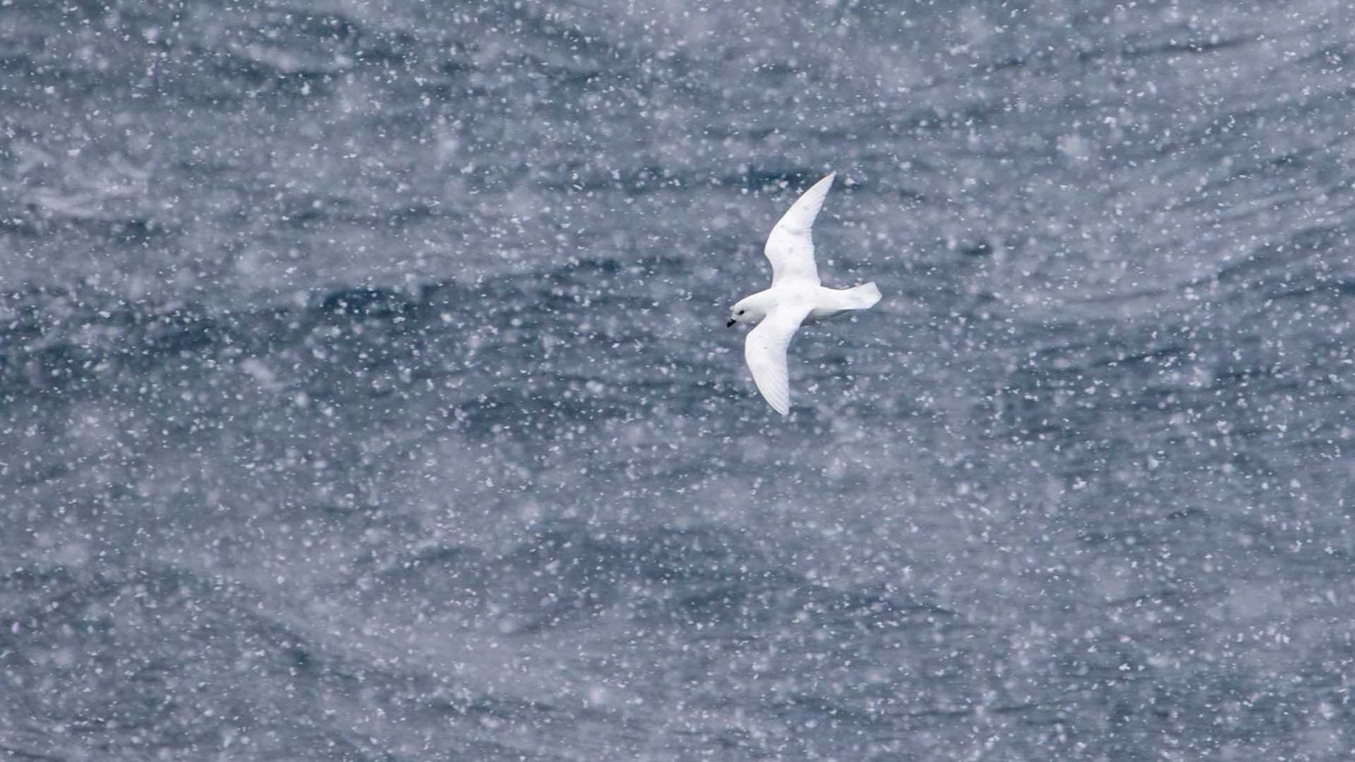 Being exposed to the wind and cold, we got to see chinstrap penguins and the ice up close for the first time. It was a true expedition experience: as conditions deteriorated quickly, we were reminded that this environment might seem hostile to us, but it is home to many well-adapted species, such as the penguins that did not seem to mind the 65 knots of wind and snow. We made our way back to our comfortable ship and continued on our way to Shingle Cove.
