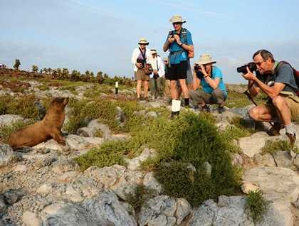 We took a mile and a half walk over boulders surrounded by wildlife. Our guests were immediately greeted by land iguanas and swallow tailed gulls.  As we continued on we were also gladly surprised by sea lion pups.