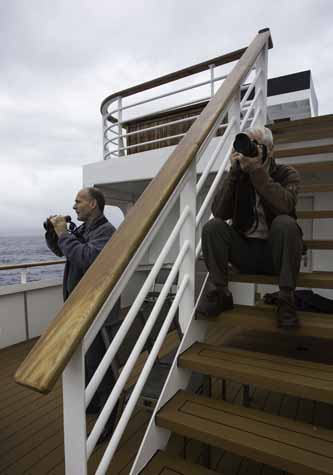 At the disembarkation jetty we had dozens of juvenile sea lions forming a welcoming committee. The first impression after landing is not only the striking marine landscape, but a cacti forest that dominates the scene which is surrounded by an otherworldly carpet of red vegetation. In this marvelous setting Galapagos land iguanas (Conolophus subcristatus) were seen wandering everywhere.  The trail leads to a spectacular cliff side where many sea bird species can be seen flying, resting and/or feeding their chicks. Some occasional frigate birds were seen gliding in the blue sky as well.