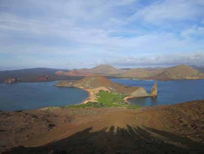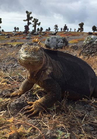 We had a dry landing at South Plaza. This small island has an arid ecosystem that has turned into the perfect natural habitat of the land iguanas. Today they are found on six different islands, including South Plaza where they became the top herbivore. This island was uplifted from the bottom of the ocean floor millions of years ago and today serves as the habitat for yellow dragons, finches, cacti, colonies of sea lions and a large variety of vegetation, allowing the biological process of secondary succession to take place. The cliffs on these islands are bathed by breaking waves and they serve as a nesting ground for the Galapagos shear waters and Swallow tailed gulls which are seen flying overhead in search of food.