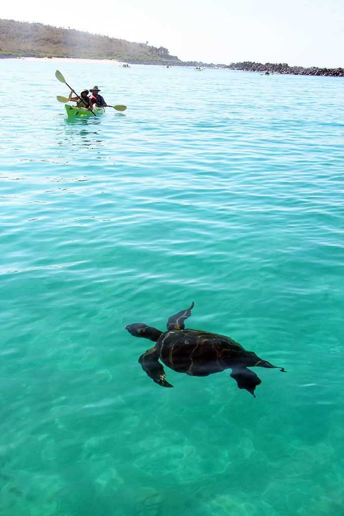In the afternoon, we navigate to the neighboring island of Santa Fe for a continuation of the fun. Kayaks and paddleboards are brought into the bay, giving our guests the most intimate vantages possible of the surrounding landscape and wildlife as they glide along. We later reach shore again, encountering a company of sea lions equally as animated as the first.
