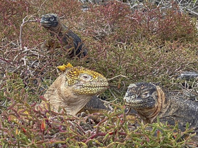 National Geographic Islander arrived during the first light at South Plaza Island to start our full day of activities in the Galapagos Islands. Upon landing, we were greeted by several marine and land iguanas, some of them even sharing the same rocks. This is a prime example of what makes this island special – the unique combination of these creatures has created a special marine-land iguana hybrid, which we were very luck to see today.