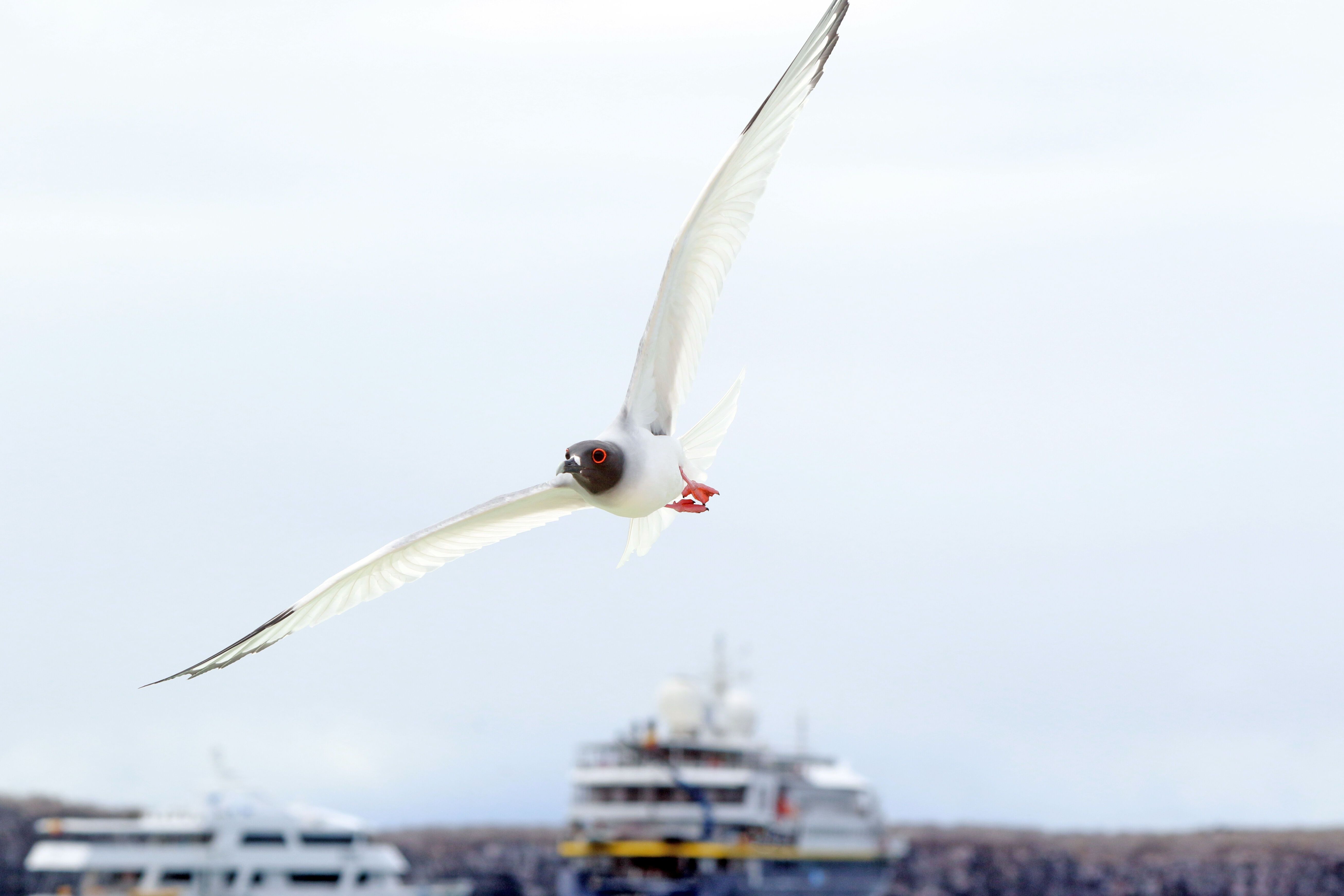 This morning, National Geographic Islander guests visited South Plaza Island. The coloration of Sesuvium sp is perfect against the deep blue of the ocean. The rocky trail–home to swallowed-tailed gulls, lava lizards, and marine iguanas–led us to the rocky shore. We found a big colony of Galapagos sea lions playing along the coast.