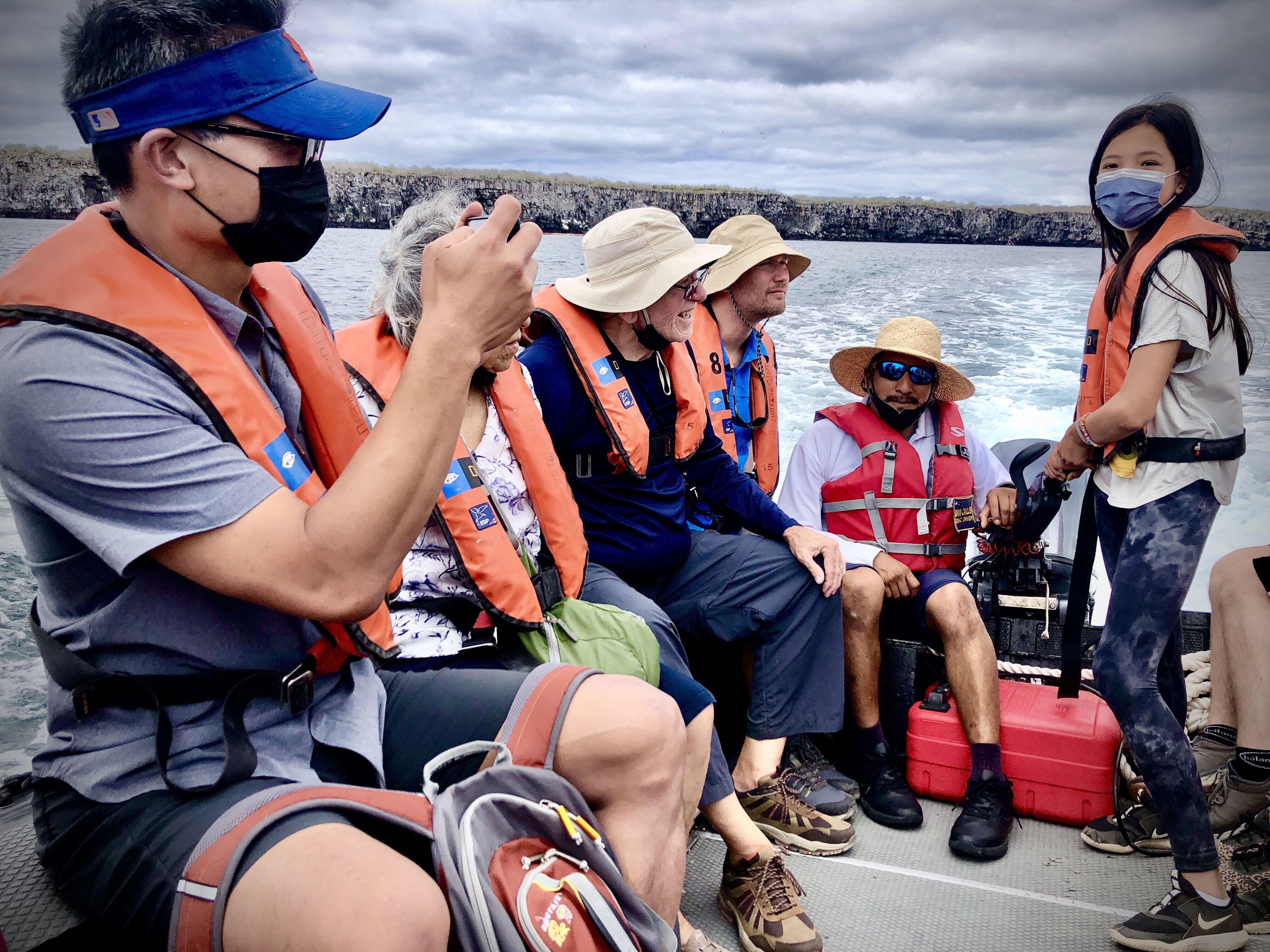 In the early morning, National Geographic Islander II visited Bartolome Island, one of the most iconic places in the Galapagos Islands. We made it all the way to the top to get panoramic pictures of the pinnacle view. Then we headed back to the ship for breakfast and to get ready for the beach, where we planned to practice with our snorkeling gear for the first time. Afterwards, some of our guests enjoyed deep-water snorkeling, and others took tours in the glass-bottom boat. During the afternoon, we visited Cerro Dragon on Santa Cruz Island to look for land iguanas, and we found them posing for us on the trail. It was an amazing day aboard National Geographic Islander II !