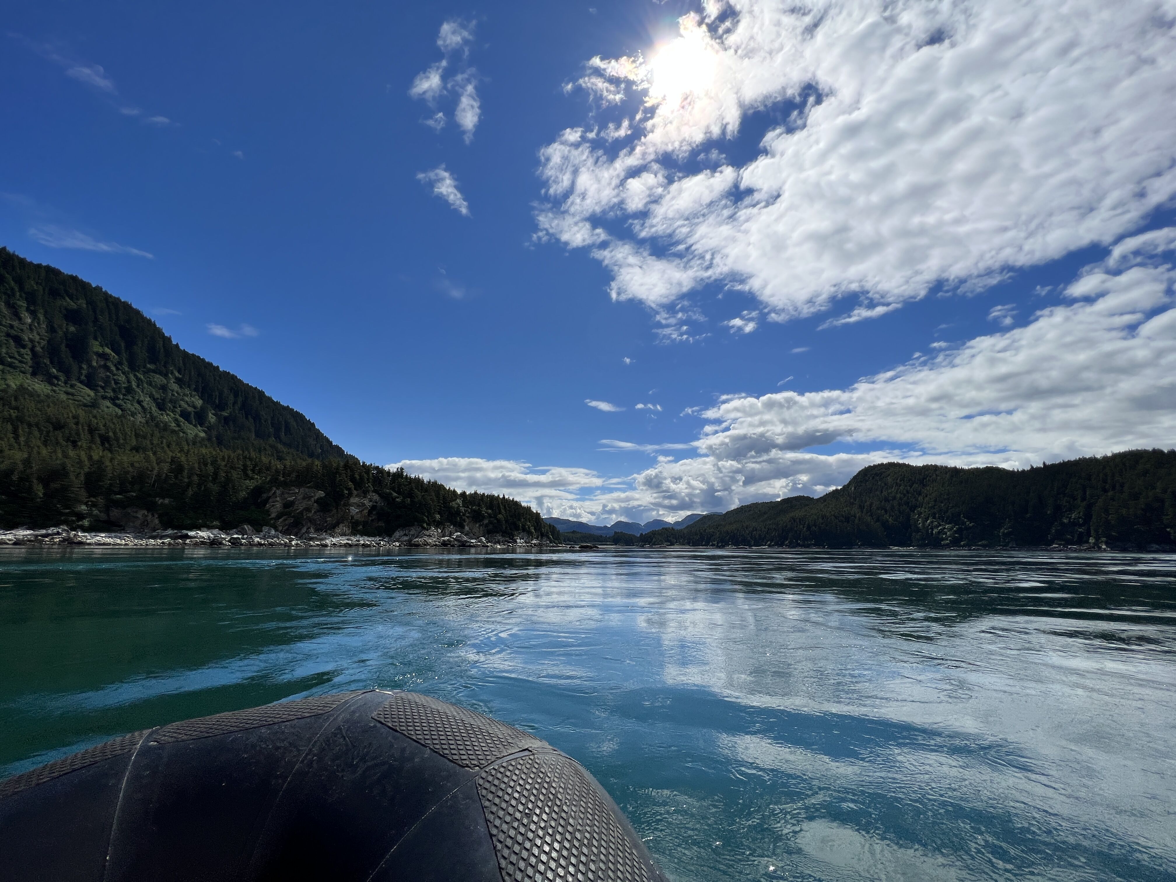 On Saturday morning, National Geographic Quest made her way through the Tracy Arm Fjord system. It was a beautiful, cool morning as we maneuvered the ship up to the Sawyer Glacier to get looks at the wall of ice, before repositioning the ship near Sawyer Island. From this vantage point, we took our guests out on two rounds of Zodiac tours. Our drivers took guests through a maze of freshly fallen icebergs and small chunks of ice, to get up-close views of the South Sawyer Glacier. While gazing at the massive, brilliant blue wall of ice, our guests were delighted to see towers of ice and sheer granite rock cliffs towering over hundreds of harbor seals hauled out on the icebergs. After the tours, we slowly worked our way out of the fjord, back towards Stephens Passage, taking in the sights of the tall mountains covered in low hanging clouds and the emerald-green waters slowly turning back to blue.