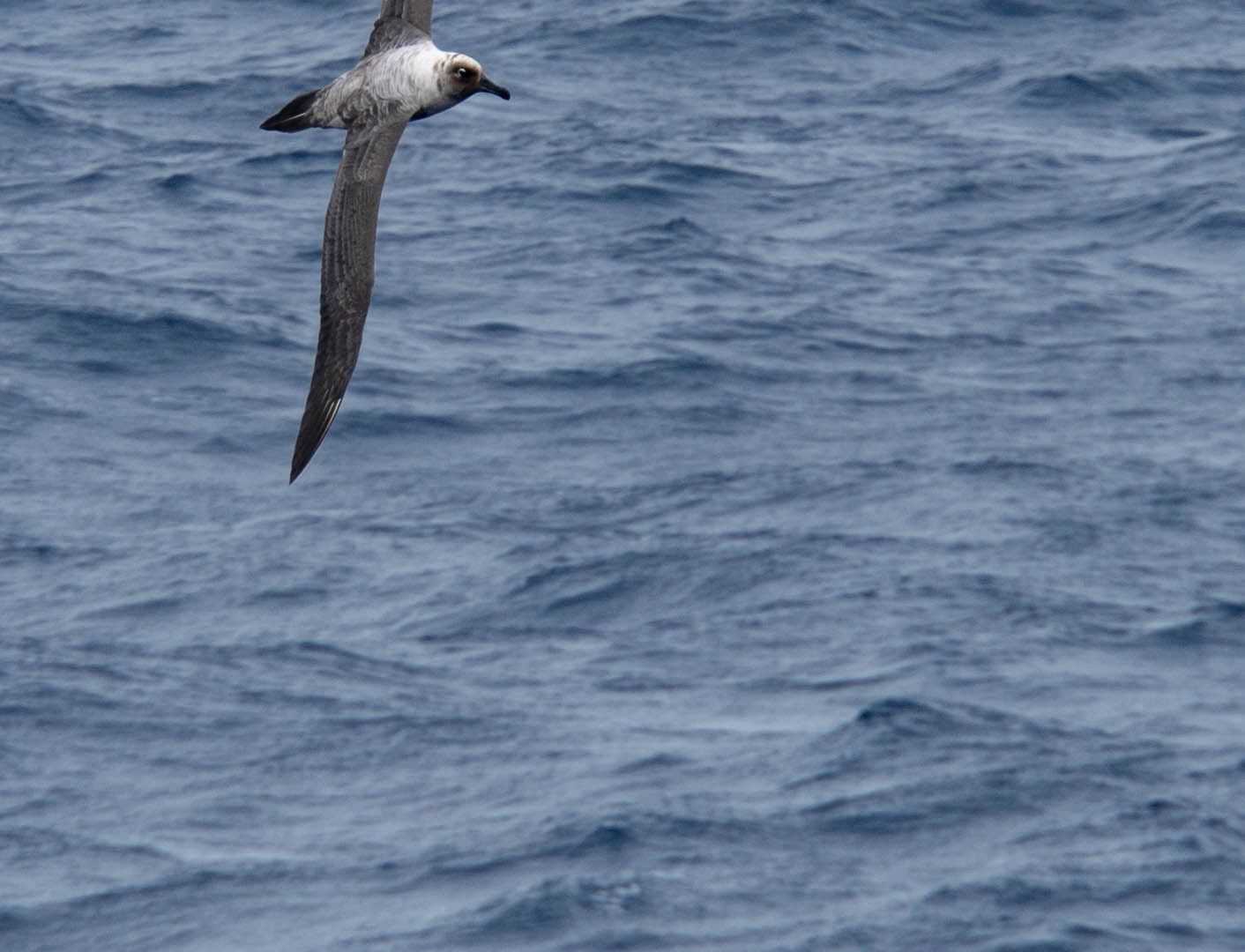 As National Geographic Explorer navigates north, we leave glaciers, snowy peaks and penguin processions in our wake. We cringe against biting winds as we squint to see through the homogenous fog that hovers over nearly freezing, turbulent seas. We are delighted at the sight of a light-mantled sooty albatross alongside us.