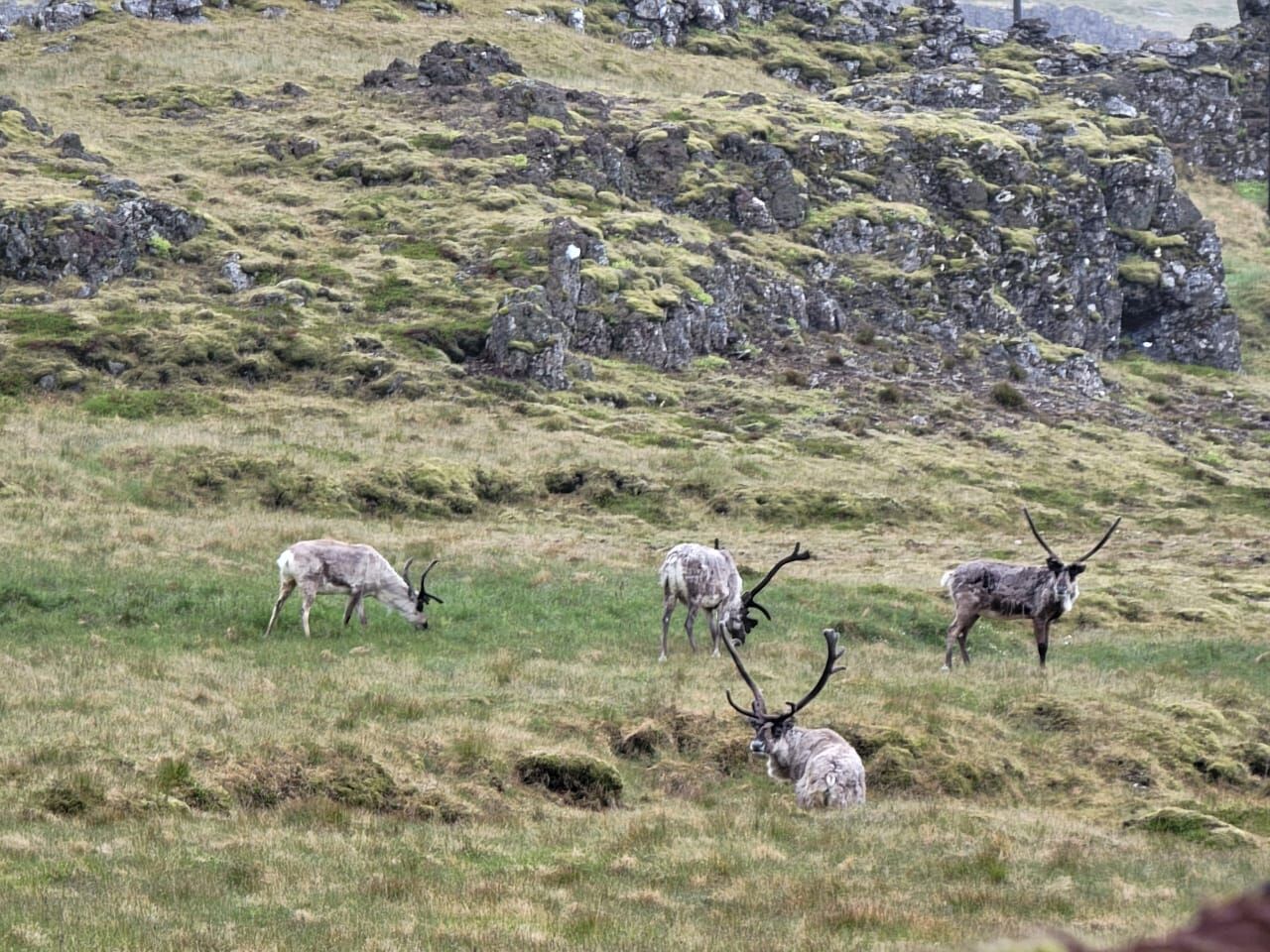 We’d flushed an arctic hare and even willow ptarmigans on the way to the cove, and we heard the singing of several territorial bird species, including bluethroats, bramblings, and redwings. The biggest surprise of all was at the water’s edge. There, we observed a small herd of reindeer and their calves drinking saltwater! This unusual behaviour of the arctic species allows individuals to obtain the salts they need which are not available from their diet — especially on a surprisingly hot summer day.