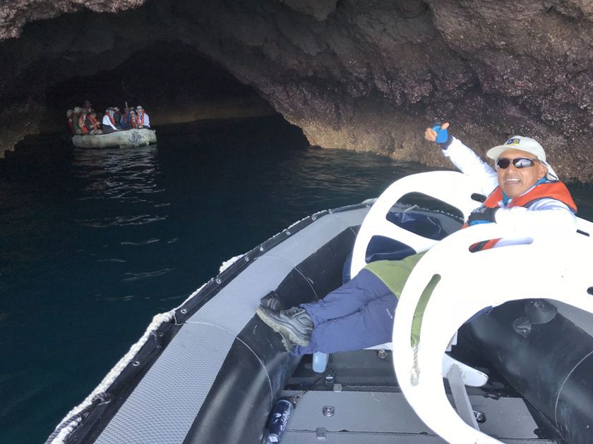 We spent most of today in Kongsfjorden, the northernmost fjord on the eastern side of Spitsbergen. The weather was warm and calm, and we had landings in both the morning and afternoon. In the morning, we landed in Signehamna Bay. Rolling hills on the landing site allowed staff to set a broad perimeter controlled by a few polar bear guards. Guests had the opportunity to hike individually or in groups in any direction within this perimeter. It was a truly High Arctic landscape with ice- and snow-covered mountaintops in all directions. Most of the vegetation was moss and lichen cover with a few species of flowering plants typically no higher than one cm. The snow patches scattered around these hills were rapidly melting, creating thousands of little streams. After lunch, we moved to another beautiful location within the eastern branch of the same fiord system, close to the Fourteenth of July Glacier. Here guests had three options: hiking (strenuous or moderate) or Zodiac cruising along the glacial edge. The strenuous hike was to the top of a mountain ridge about 400-500 m above the water level. The moderate hike was along a shoreline below a magnificent cliff where several reindeers were foraging. A black-footed kittiwake colony occupied another part of the cliff. Close to the landing site, guests observed a rare Arctic fox den in a snowbank. These dens are not rare because Arctic foxes rarely dig dens in snow; rather, the dens are ephemeral and can only be observed for short periods in the spring. Swimming along the shore, walruses presented another attraction for the enjoyment of guests on the moderate hike.