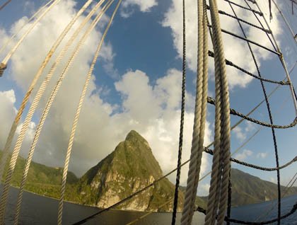 Shortly after we arrived back on Sea Cloud we had the most wonderful opportunity to motor tantalizing close to the Pitons. I have never been so close. As we bobbed beneath them the galley presented us with refreshingly cold local “Piton” beer and “pigs in the blanket” that disappeared rapidly! Tonight we had a special barbecue on the Lido Deck, which featured sashimi tuna and a wonderfully grilled “Mahi Mahi” and a delectable steak roast.