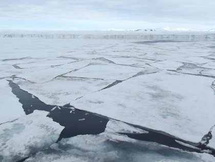 Numerous groupings or pods or harps seals were seen cavorting in open water between ice floes and there was a constant movement in all directions of skeins of guillemots and little auks flying in straight lines just over the water’s surface, as well as countless individuals swimming about in search of food...these waters must be incredibly rich to support such huge numbers of sea birds.  In the early afternoon, we cruised along more pack ice out in open water in the southern reaches of Storfjorden, and then turned westward and sailed around the southern end of Spitsbergen and out to the Arctic Ocean drop off along the western edge of the Svalbard Archipelago.  The calm, glass-smooth sea conditions created nice reflections as we kept a watchful eye for more marine mammals.