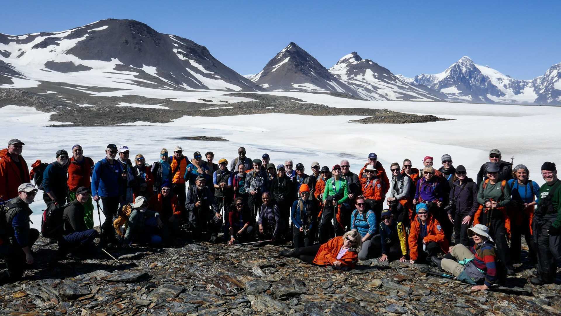 Meanwhile, the ship positioned to Stromness Bay and the rest of the group hiked up the valley to the waterfall which Shackleton and his men descended as one of their last obstacles before finding help at the station. As the valley hikers approached the falls, the walkers who went on the Shackleton hike descended from the pass and the group was reunited.