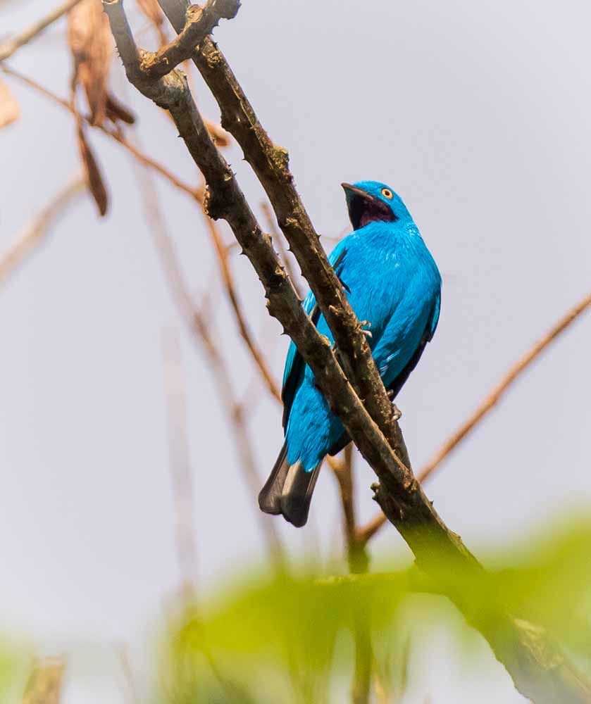 Later we visited Yarapa Caño to spot wildlife in the golden hour. We observed wooly monkeys, orioles and tanagers, cotingas and thousands of other birds flying into the sunset. We returned to the confluence of the Marañon and Ucayali Rivers right at the birth of the mighty Amazonas River, and went closer to the riverbank to witness one of the most spectacular shows seen in the Amazon. Parakeets, orioles, weaving birds and many more were returning to firm land as the sun was setting, a landscape full of colors and sounds, an experience we will never forget.