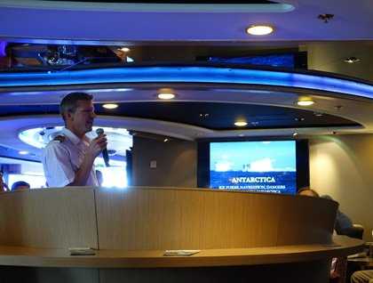 As we continued our pleasant voyage on the “Drake Lake” many of us reflected on the fantastic journey we had just experienced. A mere fleck of iron and steel in the vast blue sea, we made our way towards a continent of many more colors than the whimsical white wonderland far behind in our wake. Guests were encouraged to look through their photographs and put in final submissions for the guest slideshow. After sorting through all of the amazing pictures, we found ourselves wishing for just one more day with new friends and adventures alike on the white continent! Although very fashionable, guests seemed relieved to return their heavy rental snow boots and accessories before packing up their luggage. Presentations were a special treat today as two experts in their respective fields shared with us about their time in the Antarctic region. Dr. Peter Carey has such a fascinating breadth of knowledge and focused his talk on his research and recovering ecosystems, while our Captain gave an enthusiastic lesson on ice navigation in the Antarctic. It is always a pleasure to hear the passion saturated in the words of gentlemen speaking about the challenges and adversity within their profession, yet remaining zealous in their hard work.