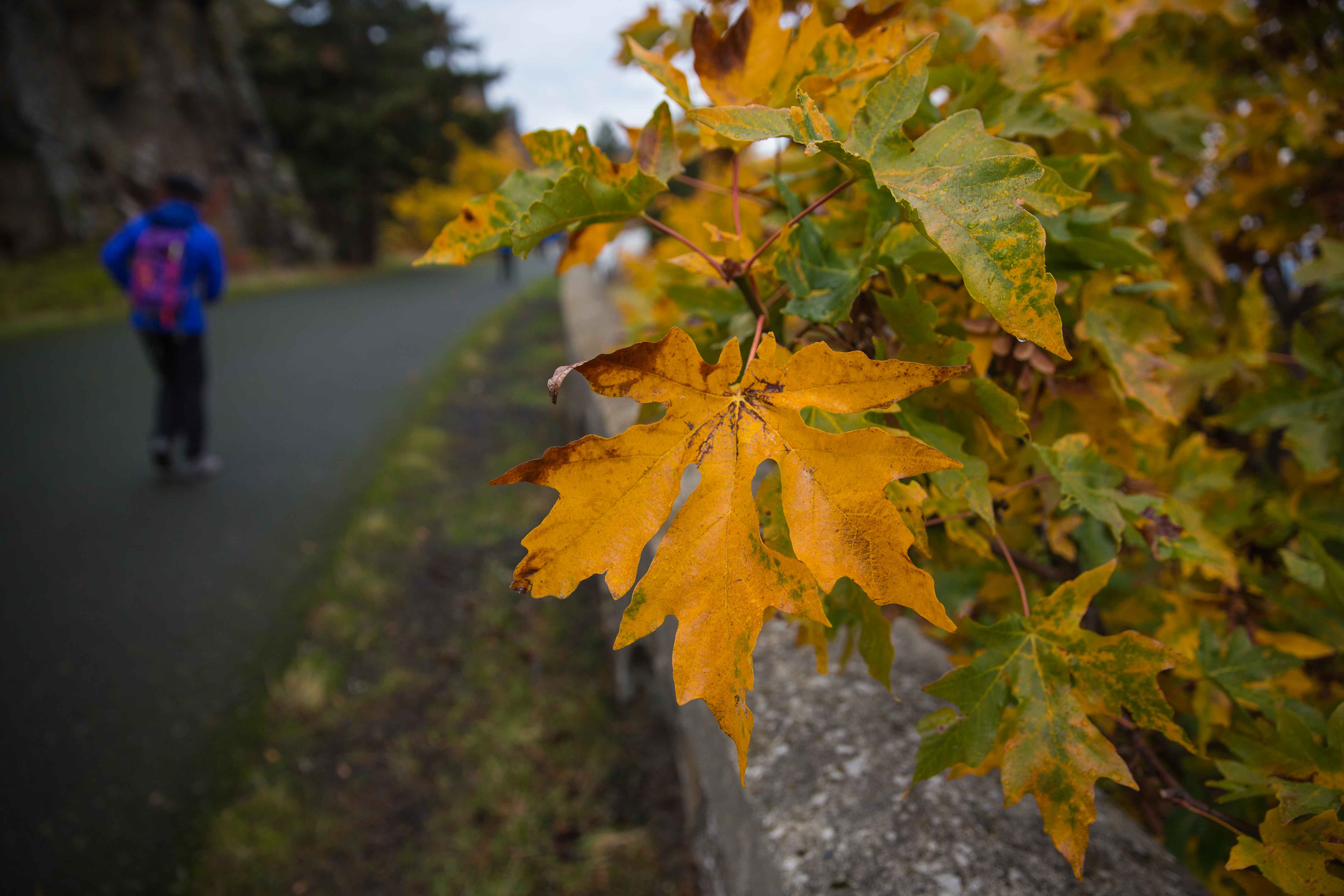 We then traveled to the Columbia Gorge Discovery Center, a spectacular museum of the local geology, history, and culture. Here we were treated to an excellent interactive experience with four raptors: American kestrel, red-tailed hawk, great horned owl, and bald eagle. These birds, whose ability to fly has been compromised by injury, were rehabilitated at an associated raptor center. The Discovery Center is an excellent museum that could occupy far more time than we had. A nature walk down towards the river allowed us to identify many native plants as well as a large cottonwood tree recently felled by beavers. A memorial composed of a hexagonal column from the Columbia River basalts gave us an opportunity to see the black, finely crystalline nature of the basalt.